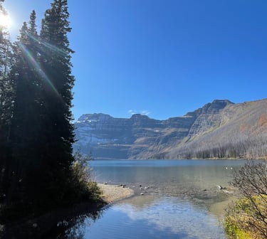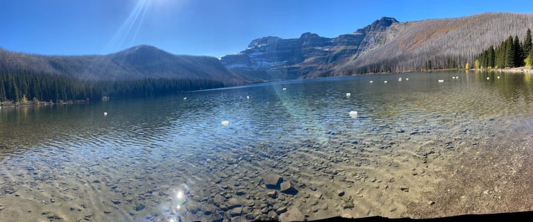 Took a drive up to Cameron Lake. There's nothing like an alpine lake. There is a trail going around but 1/2 of it was blocked off due to grizzly sighting earlier that day. FACT: the other end of this lake (that mountain) is in the USA.